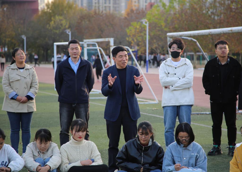 为迎接训练队新成员,更好地开展后续的训练队活动,鼓舞训练队成员迎接新挑战,11月4日,马克思主义学部领导到西操场看望冬训队员,欢迎2020级新生。活动由学部训练队组织开展,马克思主义学部党委副书记宋钧文、张忠凯,脱裤吧