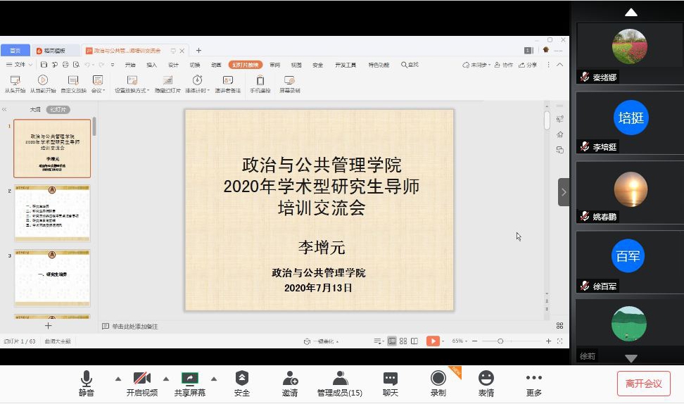 于7月13日和7月15日通过“腾讯会议”平台分别召开学术型研究生导师培训会和MPA研究生导师培训会。脱裤吧