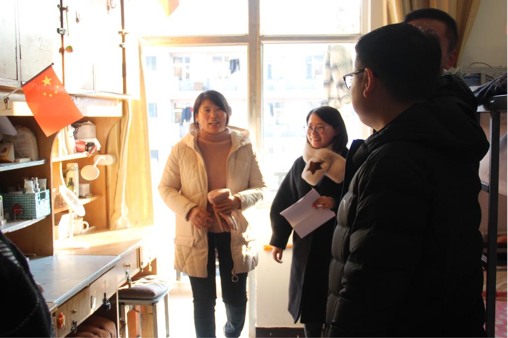 17级、18级、19级研究生宿舍的安全卫生状况和内部设施。走访检查过程中,老师们与研究生同学亲切交谈,仔细询问每位研究生的学习、科研和生活状况。通过检查发现,学院研究生宿舍整体情况良好,宿舍整洁,物品摆放有序,但也有个别宿舍物品摆放杂乱,存在卫生死角,宿舍内通风不佳等现象。针对宿舍安全卫生问题,葛老师和徐老师特别叮嘱大家要提高安全防范意识,注意冬季用电安全,不要使用大功率违规电器,出门时要做到人走断电,宿舍要勤打扫、多通风,养成良好的卫生习惯。