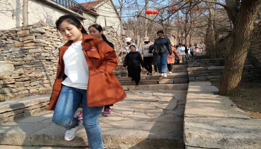 沂南县马牧池乡常山庄村通过保留古朴风貌,建成独具特色的古村落集。依托红嫂文化,土特产展销,以及红色影视基地建设,常山庄村实现新型农村建设的华丽转身。学院学生自由走访村内古建筑,参观红色影视基地,与当地居民亲切交流。