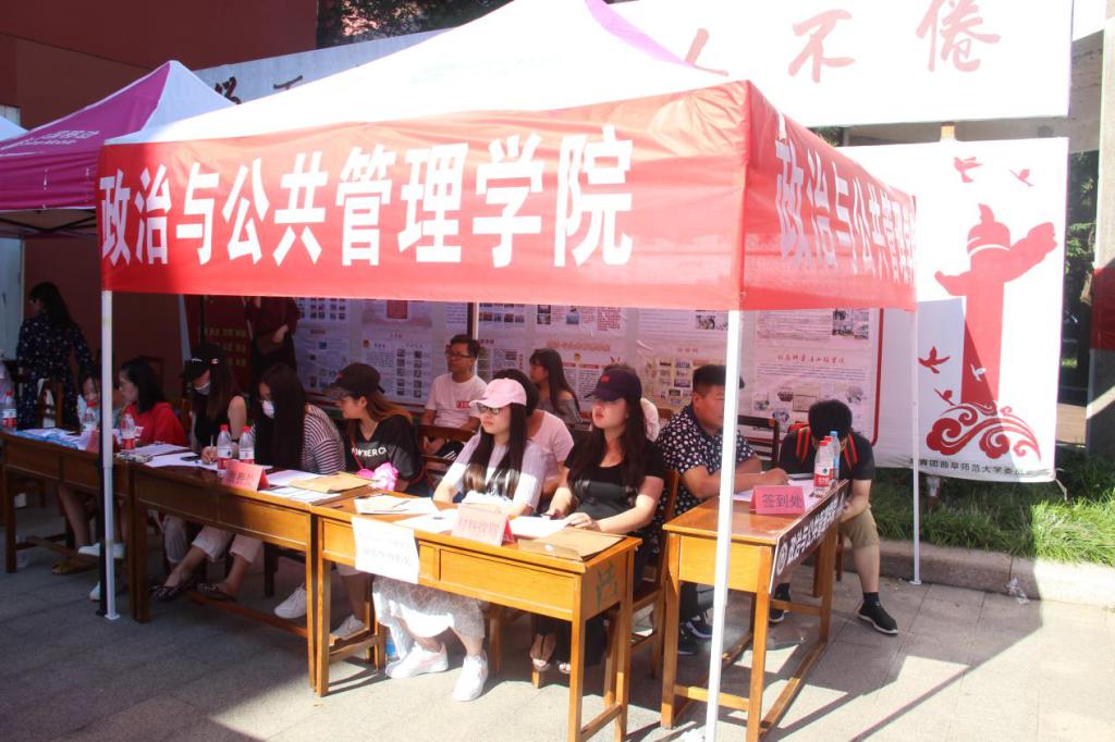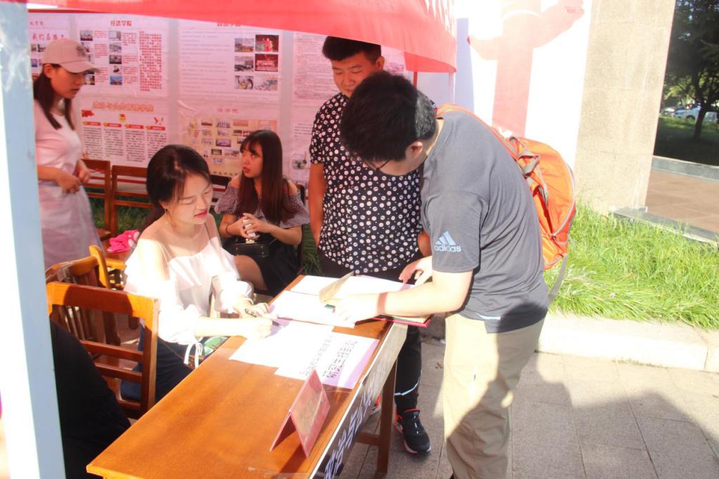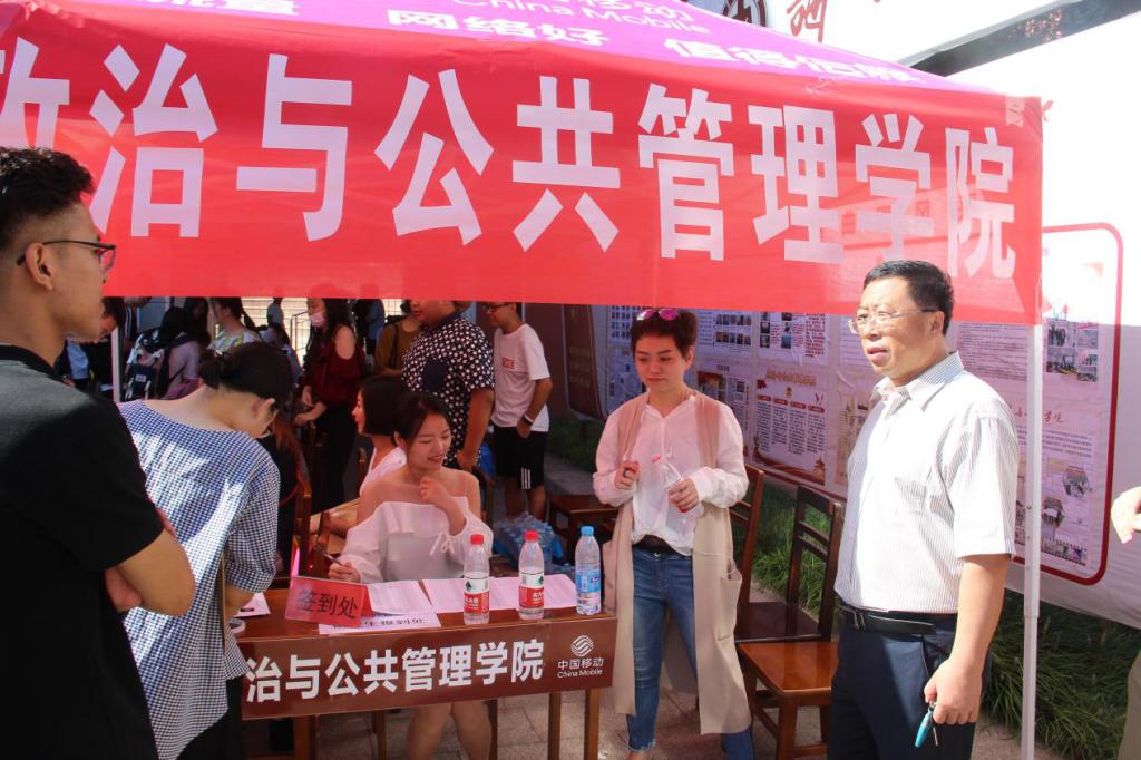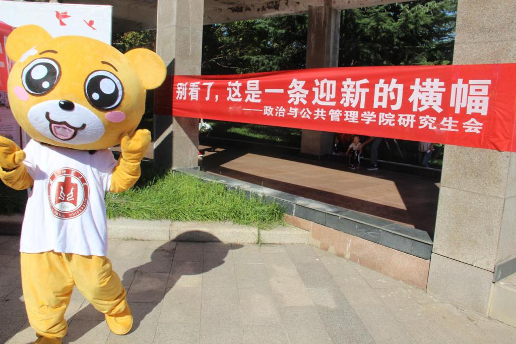 研究生会的迎新工作人员们来到D楼广场迎新报到接待点,为即将入学报到的2018级硕士研究生新同学提供一系列迎新报到服务。