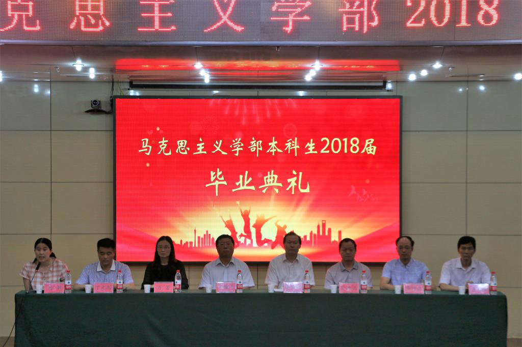 马克思主义学部本科生2018届毕业典礼于图书馆报告厅举行,马克思主义学部主任、马克思主义学院院长李安增,马克思主义学部副主任、脱裤吧