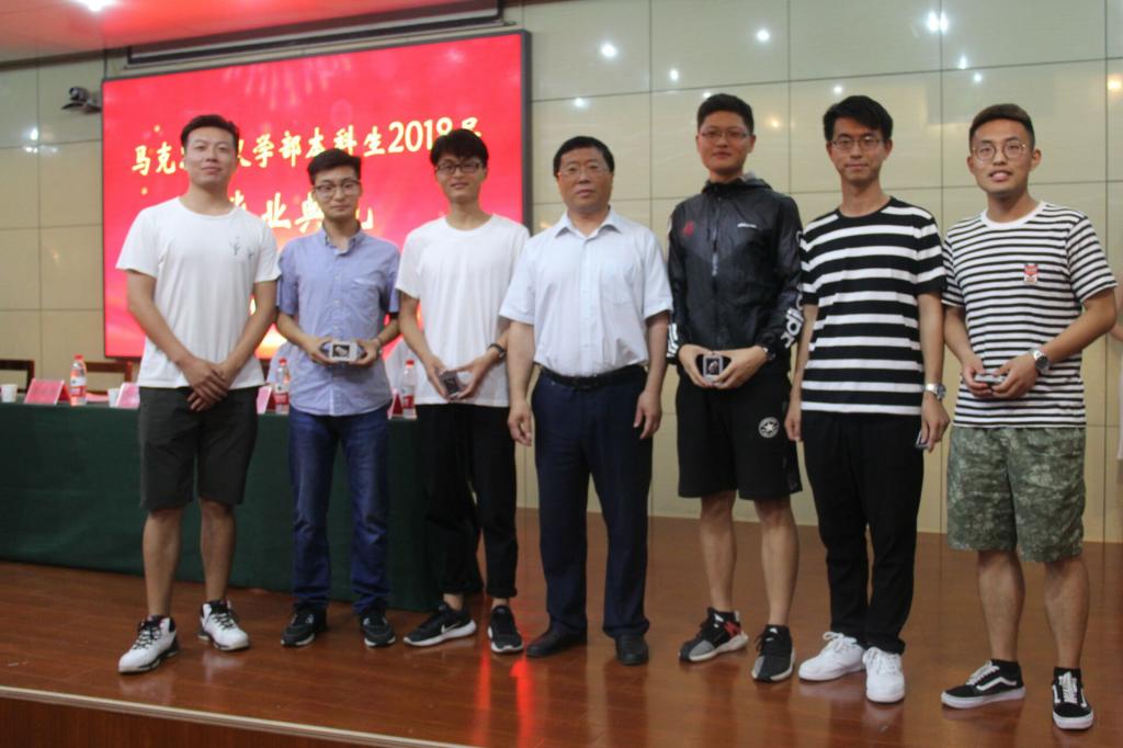 获奖者一一颁发证书、为全体毕业生颁发学部纪念品,并合影留念。在热烈的掌声中,学部本科生2018届毕业典礼圆满结束。