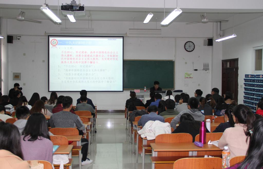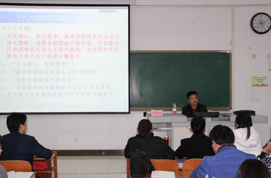 11月28日,日照市委高校工委十九大精神宣讲团成员、我校杰出校友、山东体育学院李静波博士到马克思主义学部宣讲,学部党委副书记宋钧文主持,韩凯辉老师与会,学部学生会主席团成员、入党积极分子参加。