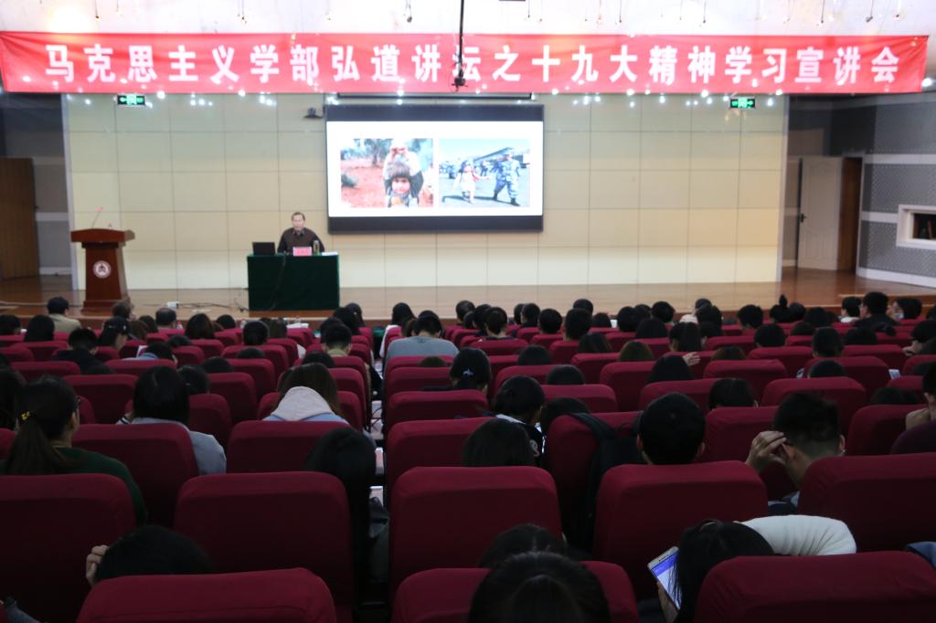 11月7日下午,马克思主义学部于图书馆报告厅举行弘道讲坛之十九大精神学习宣讲会。本次宣讲会由学部党委书记张立兴教授主持,学部主任、马克思主义学院院长李安增教授担任主讲人,学部副主任、脱裤吧