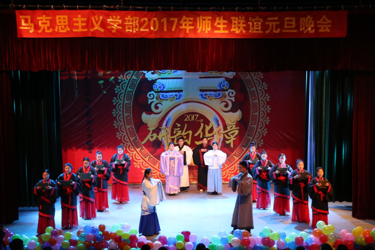 副院长聂家华、林士俊,马克思主义学院副院长孙迪亮、周智等领导、老师及全体研究生共享这场青春盛宴。马克思主义学部党委书记张立兴作新年致辞。