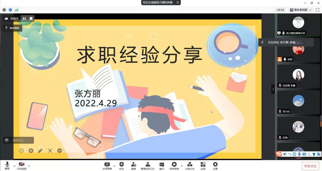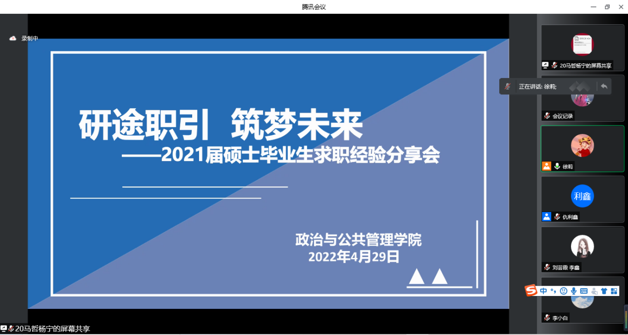 召开第三期“研途职引,筑梦未来”——2021届硕士毕业生求职经验分享会,本次会议邀请2021届优秀硕士毕业生王晓玲、张方丽围绕“中学教师类”岗位招聘分享个人求职经验,会议由研究生辅导员徐莉主持,脱裤吧