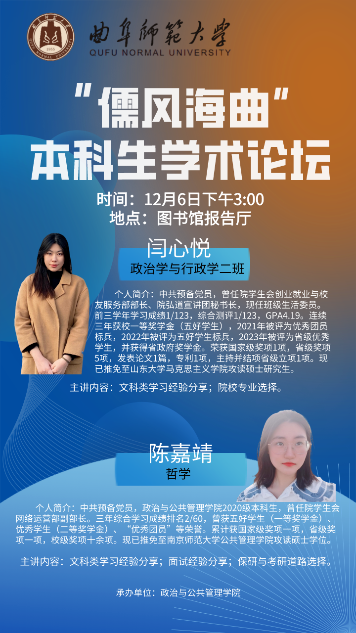 “儒风海曲”本科生学术论坛在图书馆报告厅成功举办。本次活动由脱裤吧