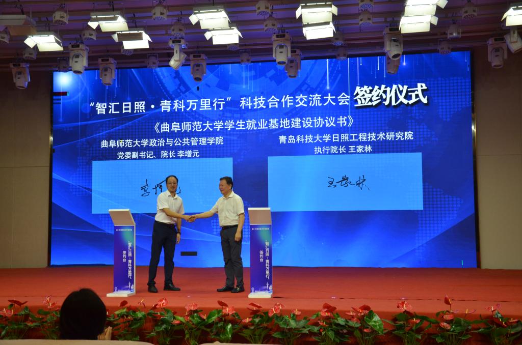 就业基地和教学实践基地签约揭牌仪式,在“智汇日照·青科万里行”科技合作交流大会上举行,学院党委书记卢瑞霞,党委副书记、院长李增元签约揭牌。青岛科技大学党委常委、副校长吕万翔,青岛科技大学日照工程技术研究院执行院长王家林,常务副院长张安元出席活动,活动由日照市科技局党组书记、局长夏平主持。