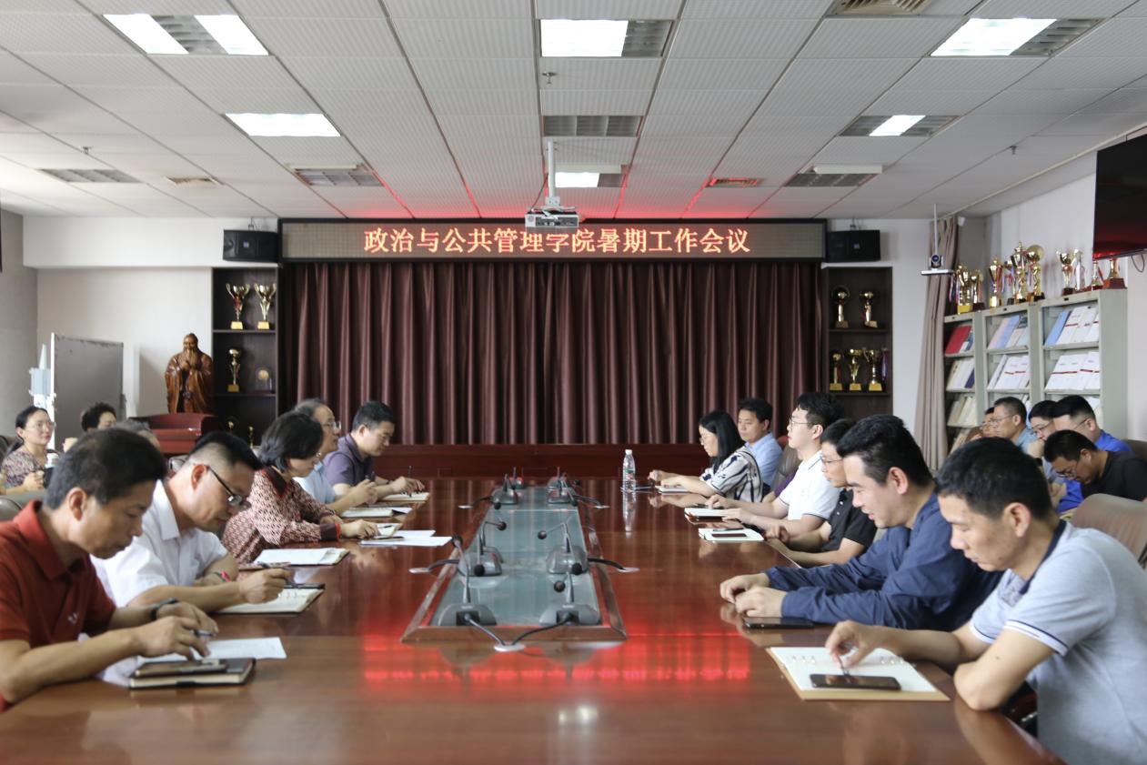 于JC909会议室召开全体教职工暑期工作会议,学院领导班子成员和全体教职工参会,会议由院长李增元主持。