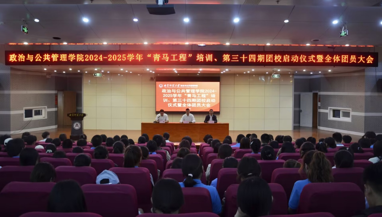 于图书馆报告厅成功召开2024-2025学年“青马工程”启动仪式暨全体团员大会。本次大会由学院团委书记马腾主持,党委副书记张忠凯、辅导员王元如出席会议,脱裤吧