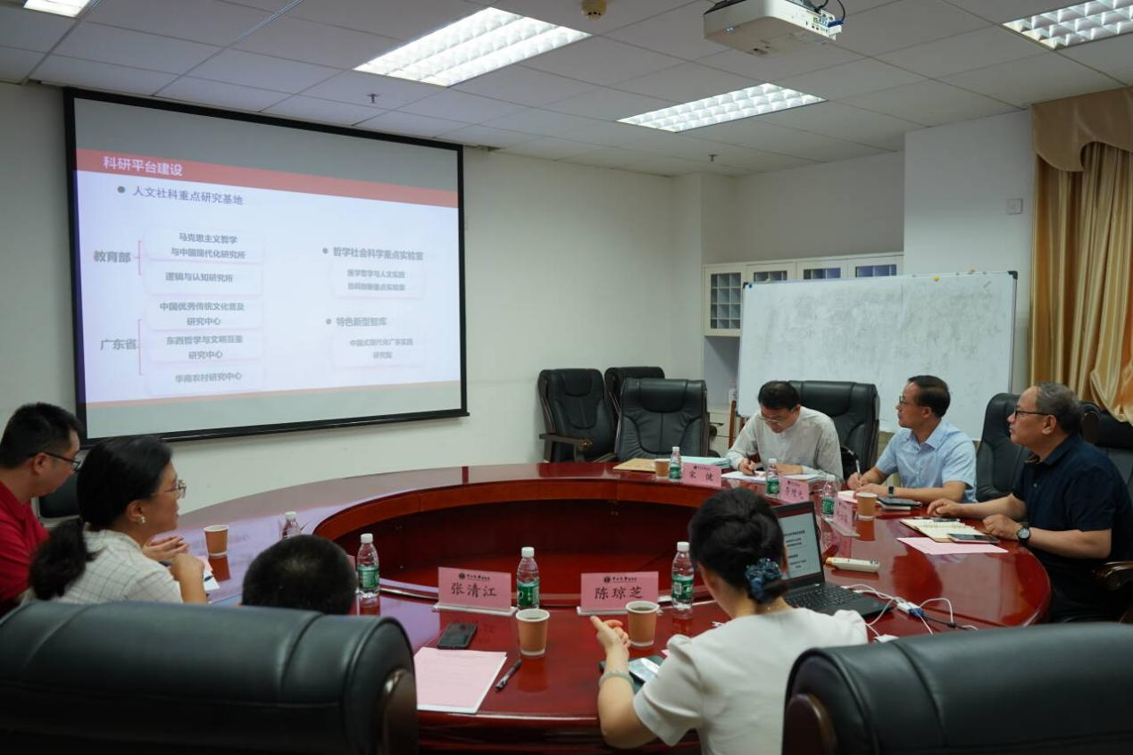 党委副书记、院长李增元、副院长林士俊、院长助理、哲学系主任宋健一行3人,赴中山大学哲学系进行专题调研。中山大学哲学系党委书记王丽霞、党委副书记陈琼芝、哲学系副主任沈榆平、张清江参与座谈。