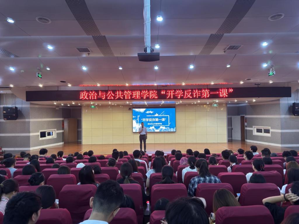 (摄影:盖雨悦 通讯员:盖雨悦)为切实提升学生反诈意识,筑牢校园安全防线,9月3日,脱裤吧 于图书馆报告厅组织开展“开学反诈第一课”。本次活动由学院党委副书记张忠凯担任主讲,学院全体辅导员、在校研究生、本科生参加。
