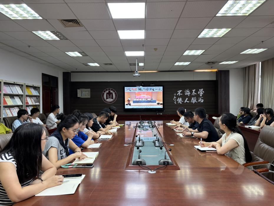 于JC909会议室参加2025级研究生入学教育大会。学院党委副书记张忠凯、副院长刘伟、研究生教学秘书刘雪婷、研究生辅导员徐莉以及2025级全体在校研究生参加会议。