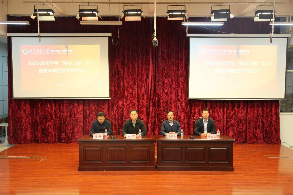 2025-2026学年“青马工程”培训及第三十五期团校启动仪式在JS328教室举行。学院党委副书记、院长李增元,校团委副书记徐哲,学院党委副书记张忠凯出席仪式。本次启动仪式由学院团委书记马腾主持,启明班、先育英班学员参加培训。