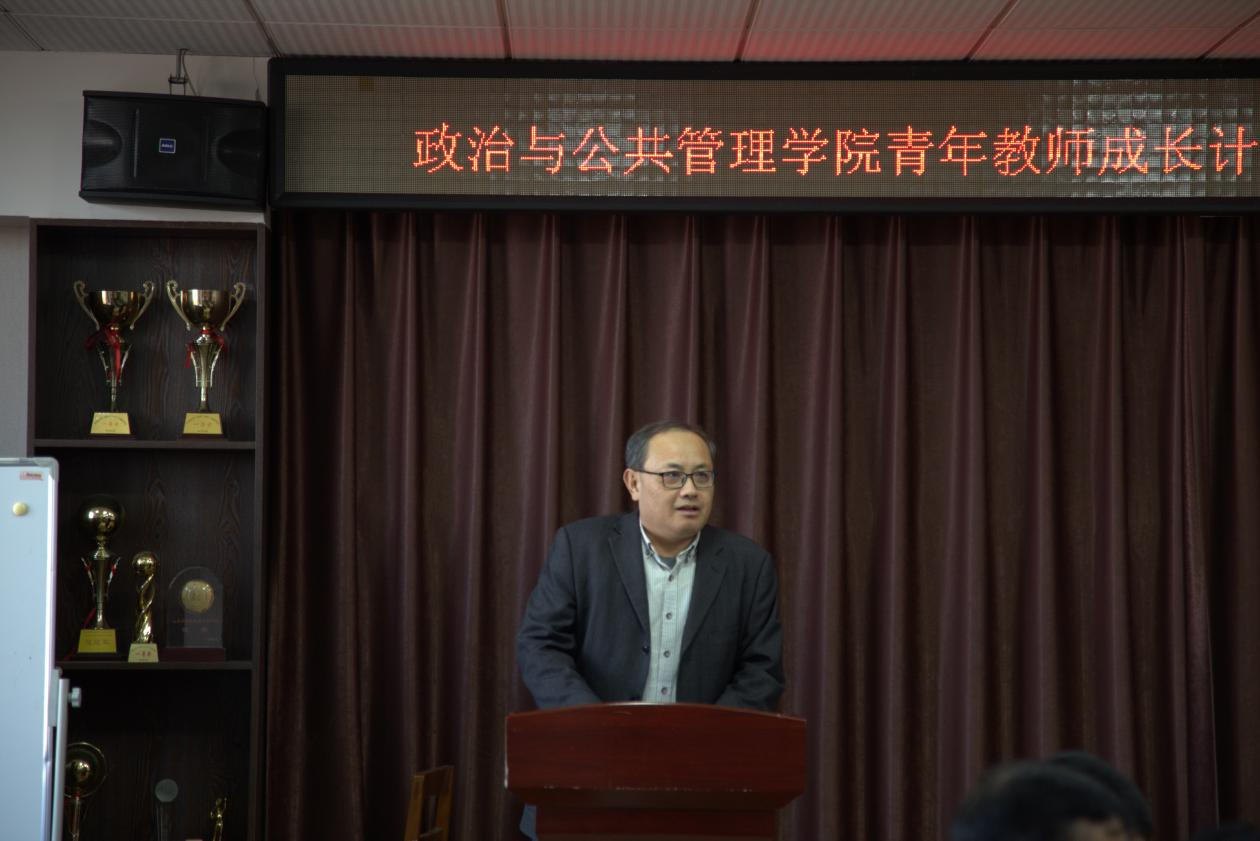 李增元在讲话中对导师成员的辛勤付出表示感谢,同时也对青年教师的成长寄予殷切期望。他对各位导师提出期望:一是传“治学之道”,带领青年教师深耕科研,聚焦时代课题,助力其科研成长;二是授“育人之术”,分享宝贵经验,指导其融入立体化课程体系,培育治理英才;三是育“修身之德”,言传身教,引导其坚守教育初心,涵养为师风范。同时,也对青年教师提出要求:要“虚心求教”“勤于实践”“勇于担当”,牢记立德树人使命,潜心治学并积极贡献学院发展,共同为学院高质量发展注入新动能。