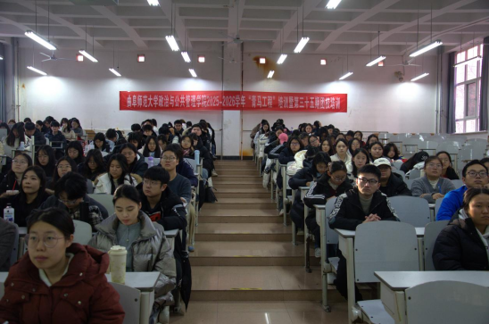 于JA105教室开展专题思政课,将2025-2026学年青马工程培训、第三十五期团校培训与入党积极分子培训有机融合,组织学生党员、”青马工程“学员及入党积极分子共同深入学习党的二十届四中全会精神。本次专题思政课由学院党委书记卢瑞霞主讲。
