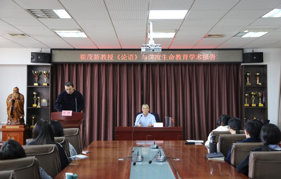 文学院崔茂新教授于JC909会议室作“《论语》与深度生命教育”学术报告会,报告会由学院院长助理宋健副教授主持,学院教师、研究生等积极参与。